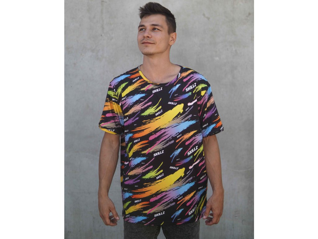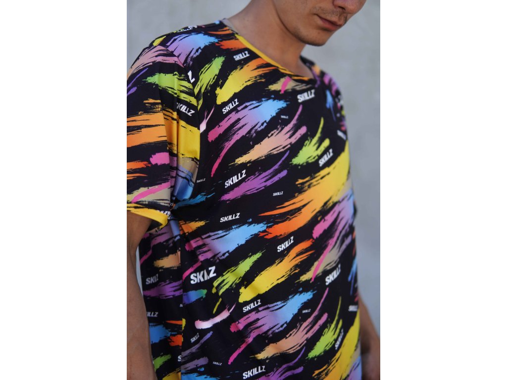 Tričko Color Blast dává černé barvě nový rozměr. Barevné tahy štětcem a nápisy SKILLZ vytvářejí design, který působí jako výbuch kreativity – každý detail dává najevo, že styl může mít sílu i směr.
